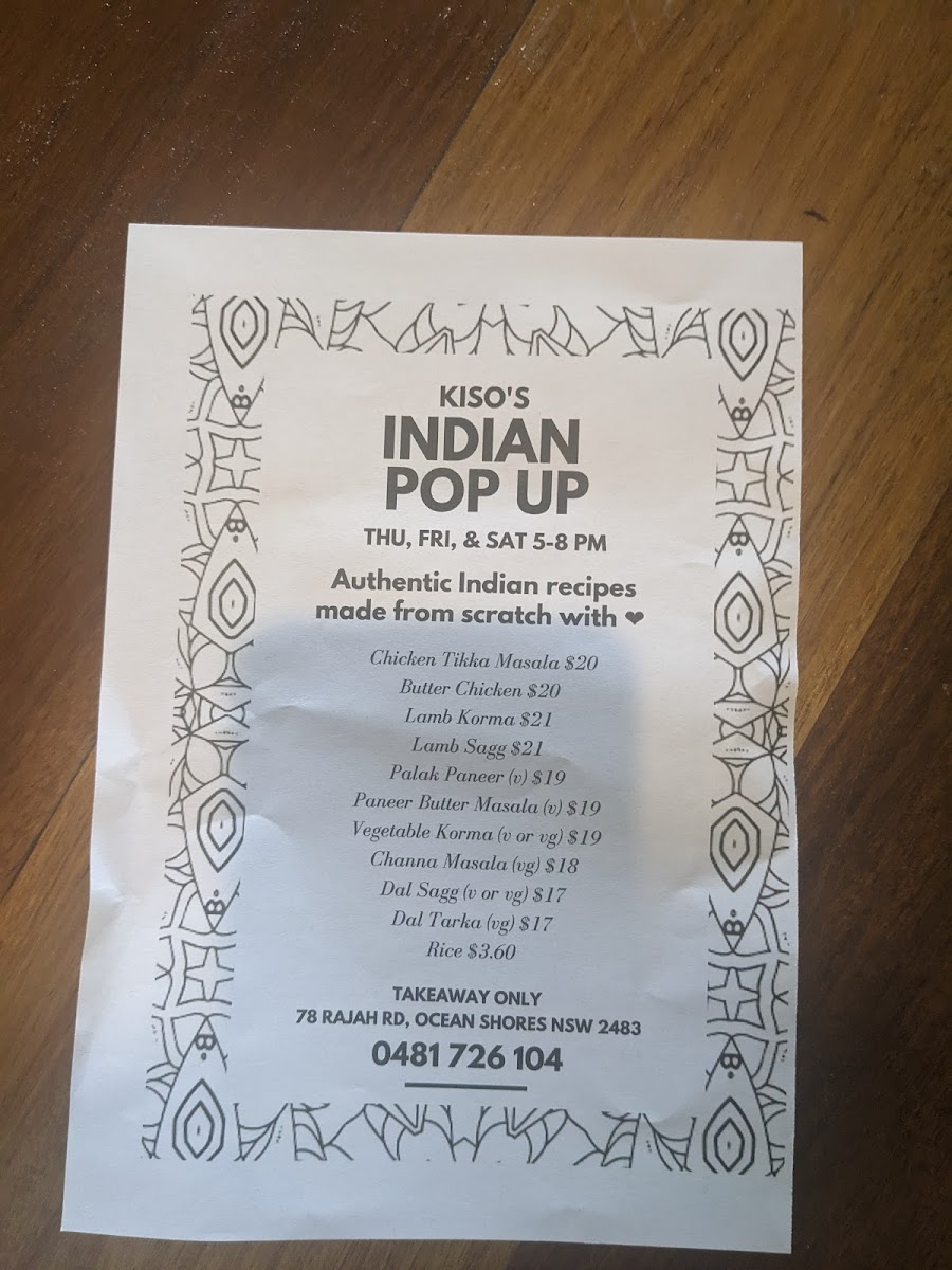 Welcome to Kiso's Espresso Bar, a delightful cafe located at 78 Rajah Rd, Ocean Shores NSW 2483. This hidden gem is not just another coffee shop; it serves an exquisite menu that brings the flavors of Indian cuisine to the forefront. Whether you're in the mood for a hearty Butter Chicken or a comforting Dal Sagg, each dish showcases freshness and authenticity.